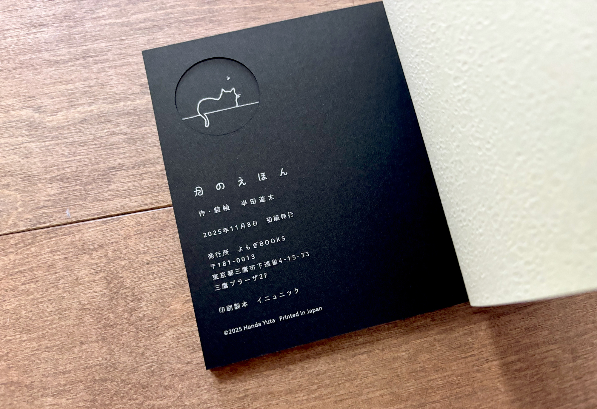 リソグラフ印刷でこれまで私家版絵本(「ねことだれかのゆめ」「こねこときのこ」)を2冊出してきた半田遊太さん。3作目となる今回はよもぎBOOKSが発行元となり、今までとはまた違ったテーマや画材、印刷・製本の形になりました。